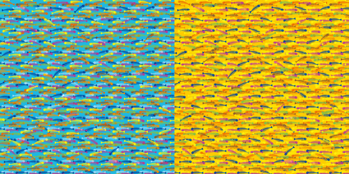 ネイチャー系のテレビ番組でよく目にするイワシの大群。数千万匹にたっすることもあるとか。そんな光景を柄にしてみたくて作ったのですが、なぜ骨?